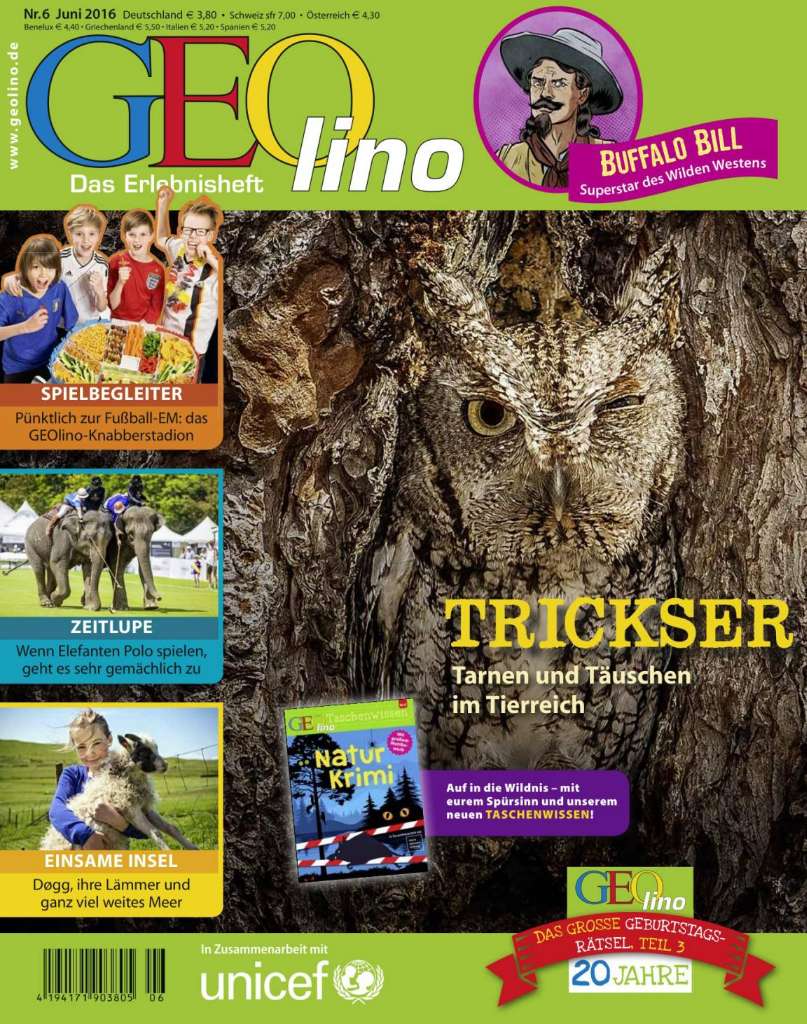 ![]() | GEOlino 06/2016 - Trickser: Tarnen und Täuschen im Tierreich